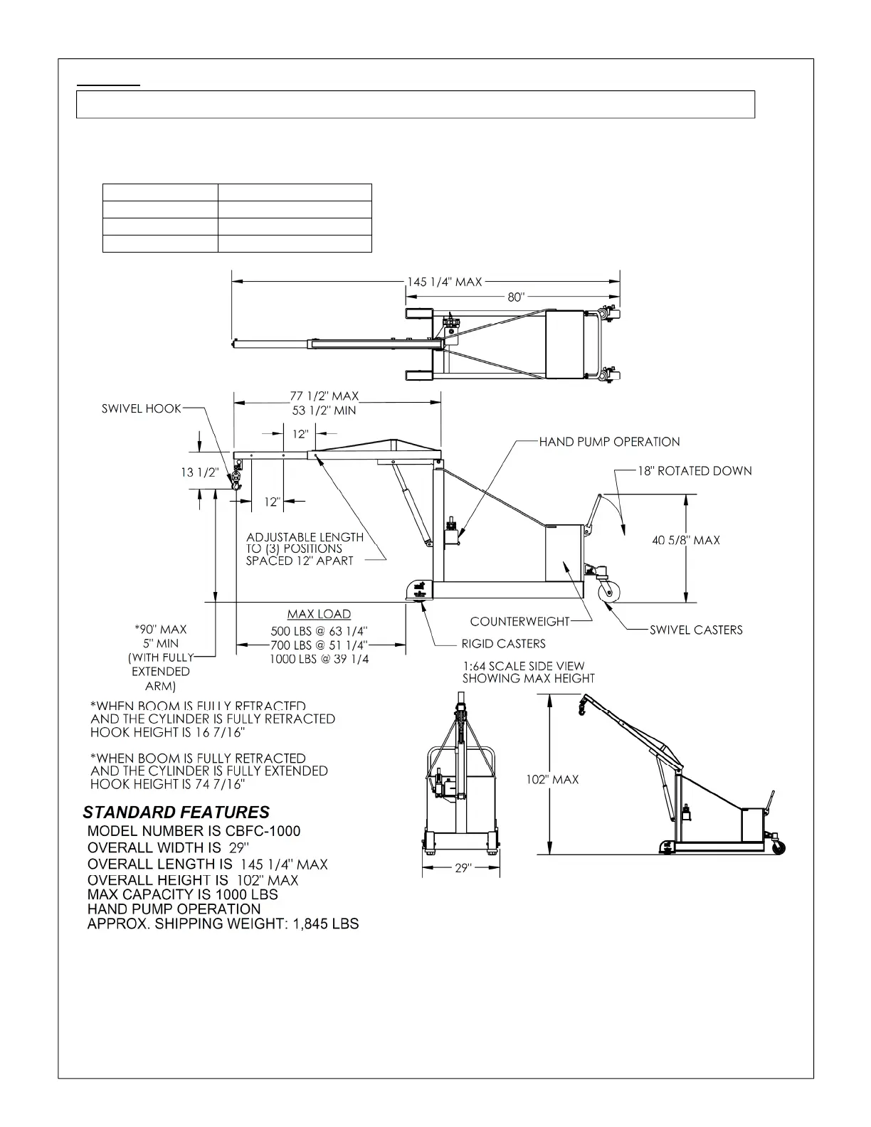 FIG 2B: CBFC-1000 rated loads for specified boom lengths