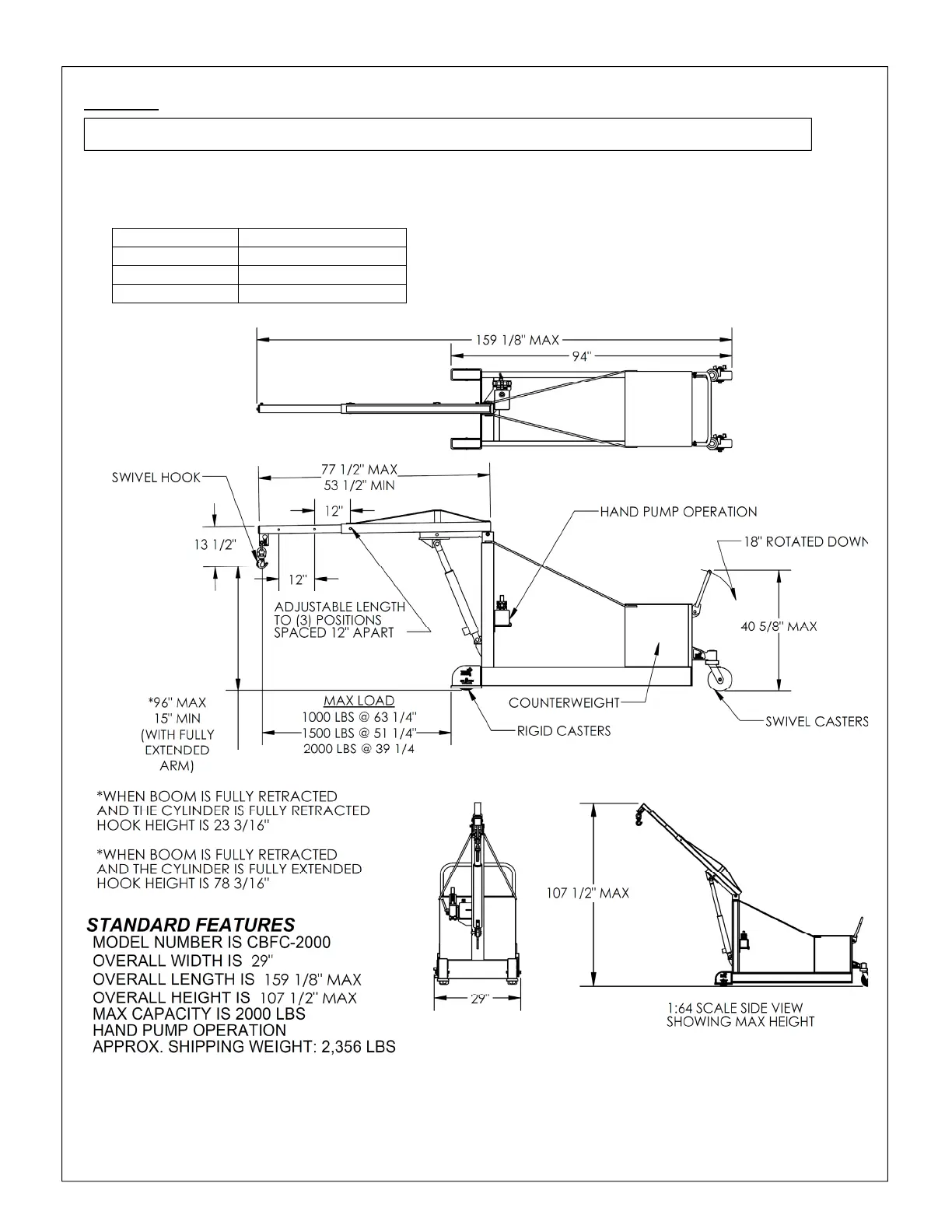 FIG. 3B: CBFC-2000 rated loads for specified boom lengths