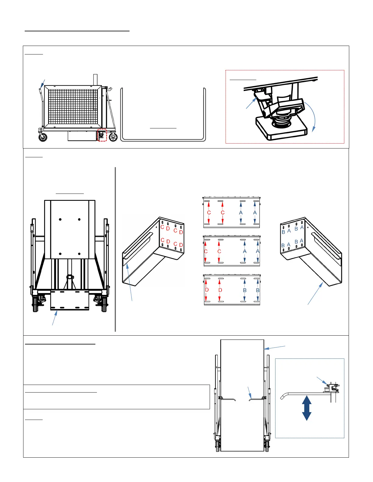 Step 2: [TCD-M units] Configure the wheel cradles for the trash bin that will be used with the dumper. Attach the wheel
