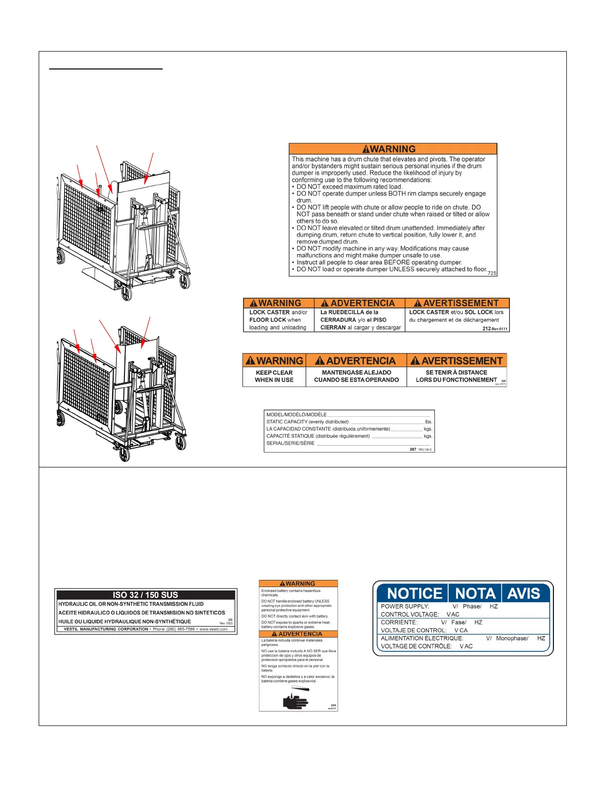 These manuals include labeling diagrams. If you purchased a trash dumper on or after 12/01/18, then you should