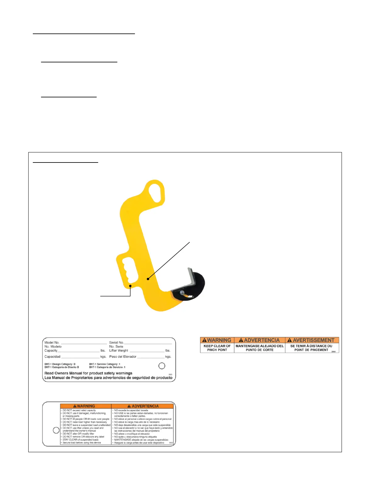 Only use the coil hook if ALL of the labels are readable and undamaged. Contact Vestil for replacement labels.