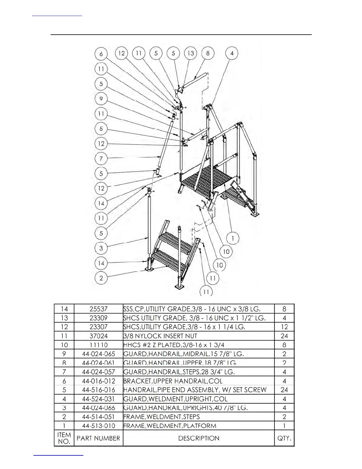 Exploded Parts Diagram & Bill of Materials: COL-3-26-14, &-HDG