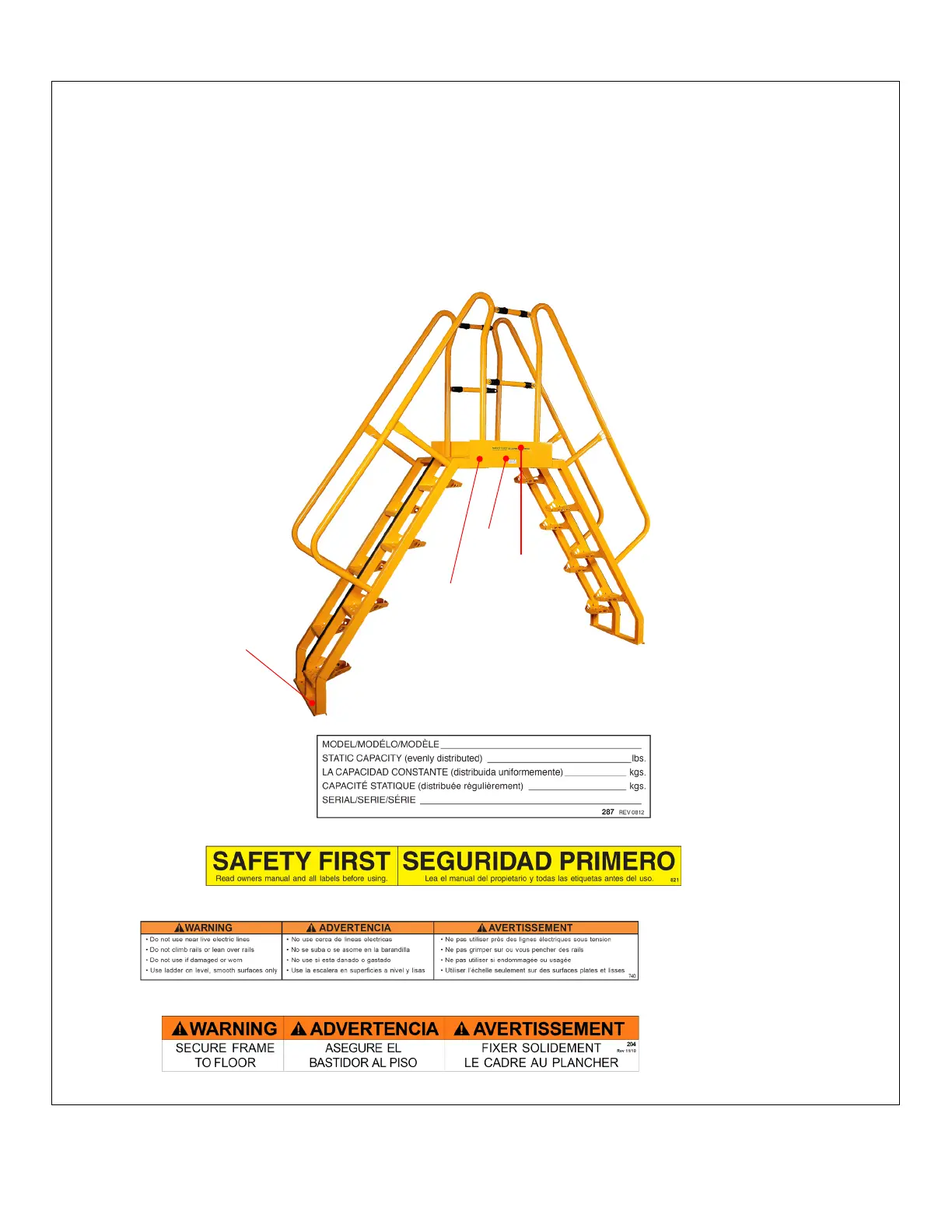 D: Label 204 (on mounting plate of both stairways)