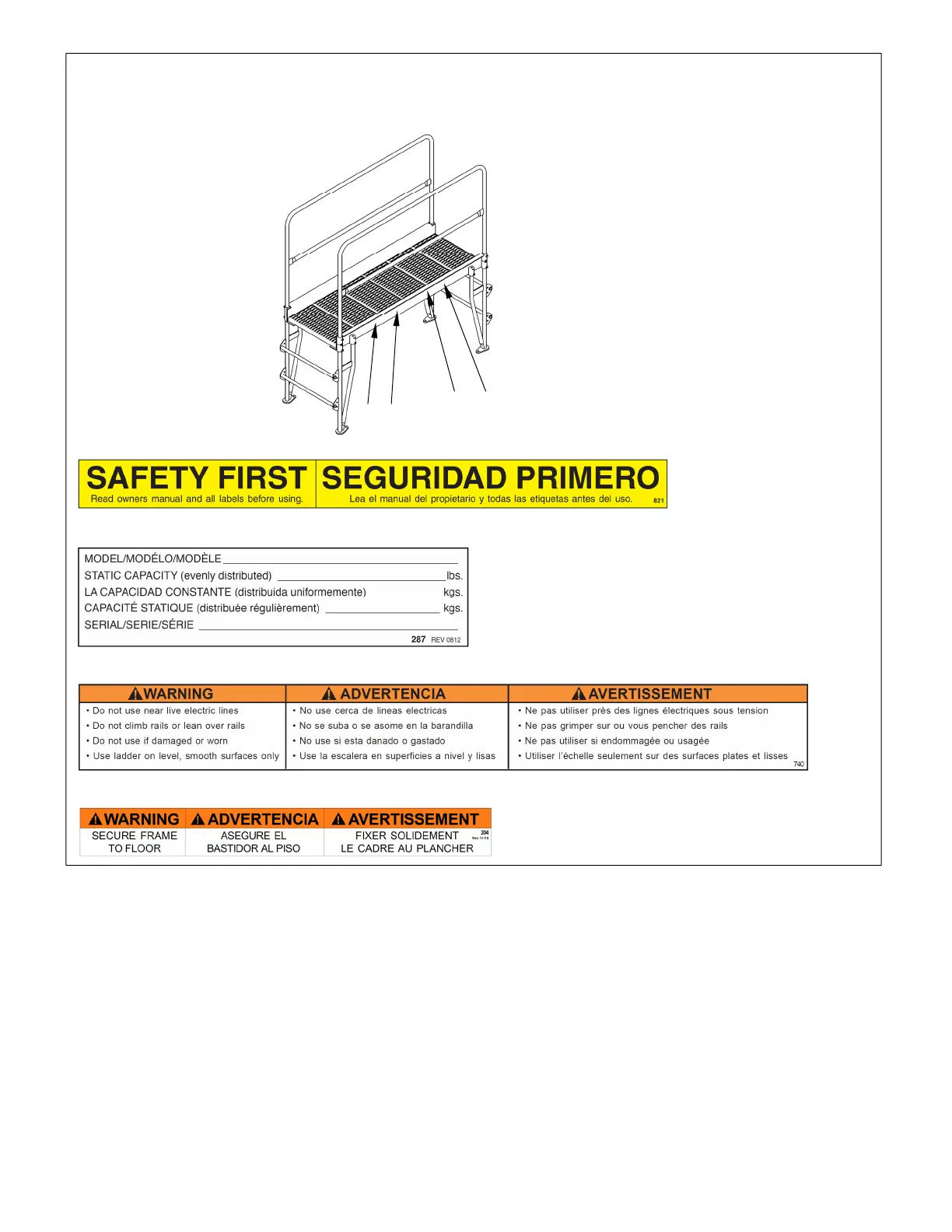 Your crossover ladder should always be labeled as shown below. Replace any label that is damaged, missing, or