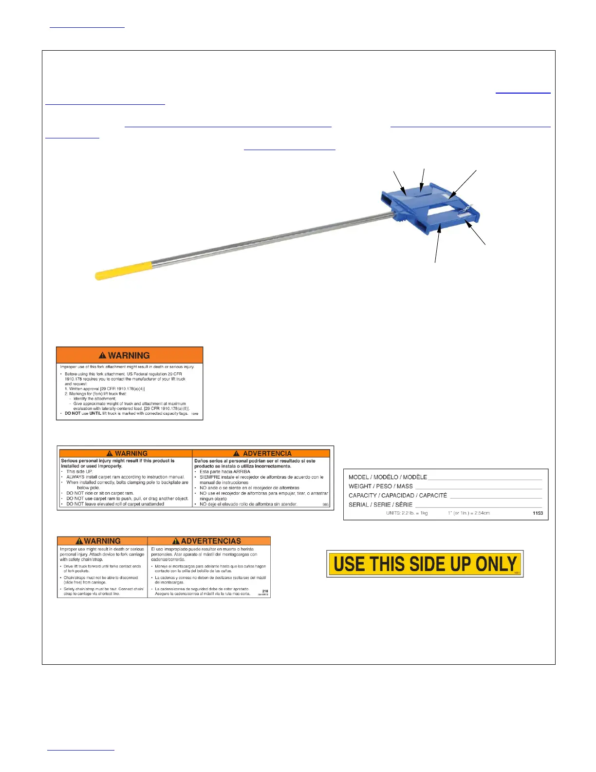 D: Label 218: Fasten safety chain to carriage