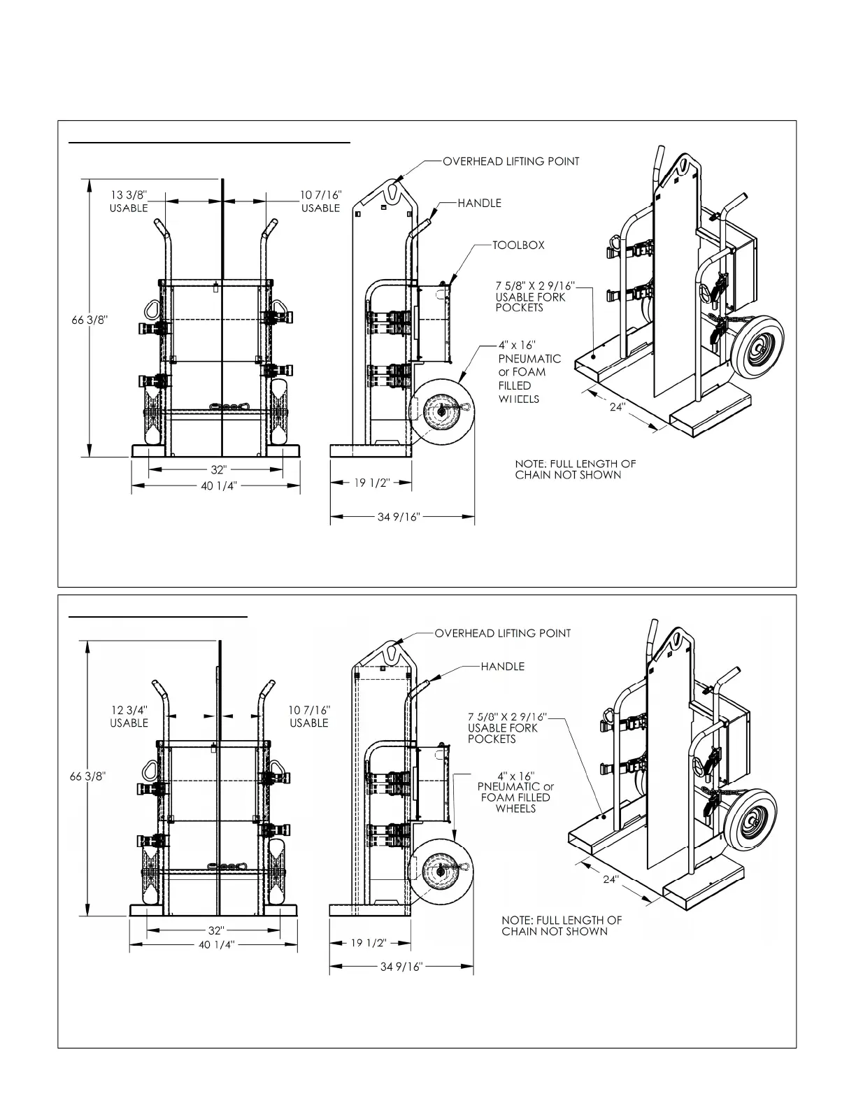 Net weight = 240 lb. (CYL-2); 271 lb. (CYL-2-FF)