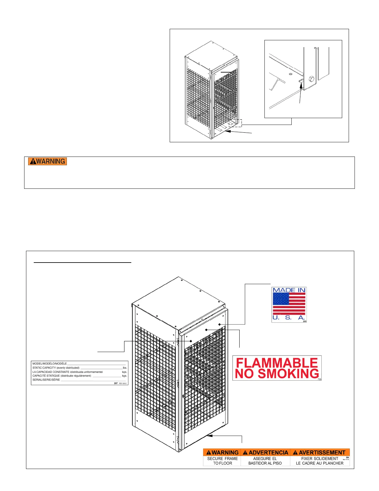Label 204: Secure frame to floor (apply to frame below door)