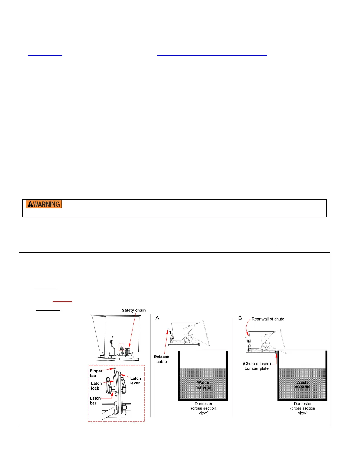 Do not hook the handle to the chute because it could be torn from the cable when the chute is dumped.