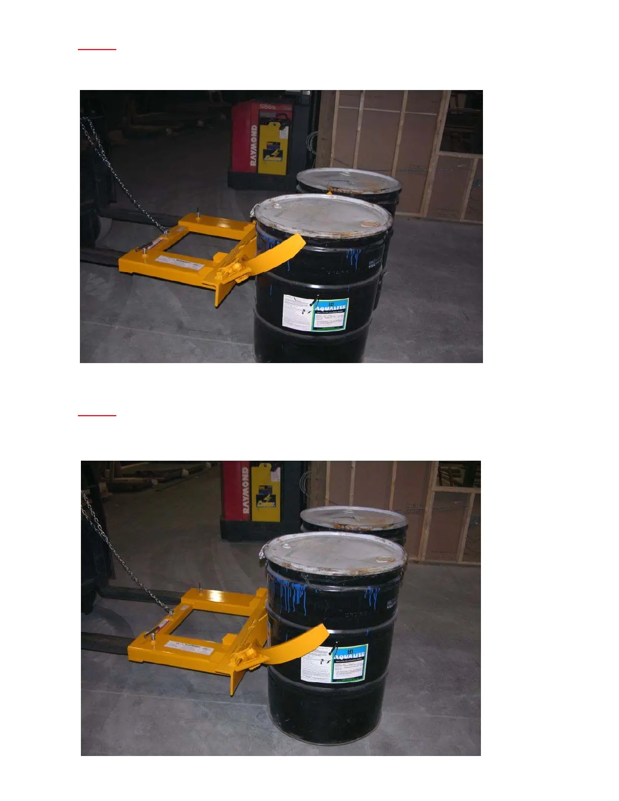Keep lowering the forks down as shown in Fig.6, until grabber arms reach in the middle of the drums.