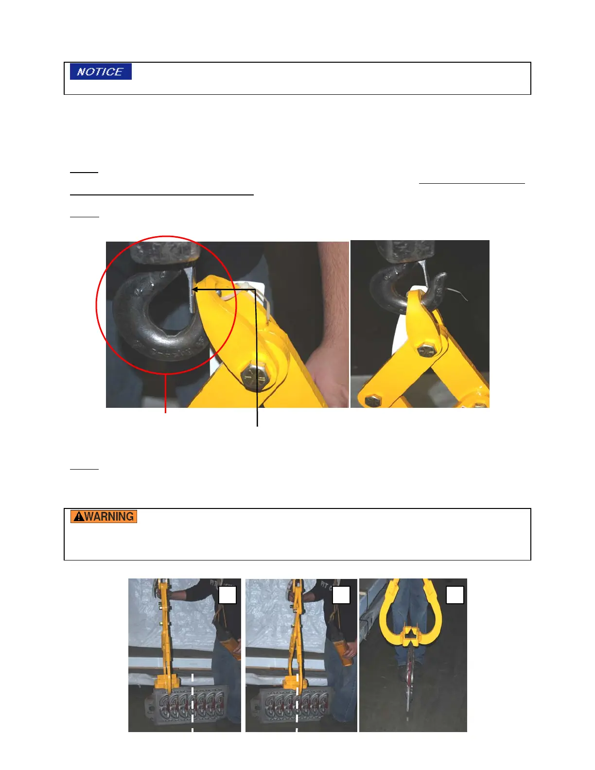DO NOT push or pull the tongs so that the hoist chain/rope is not vertical. All horizontal