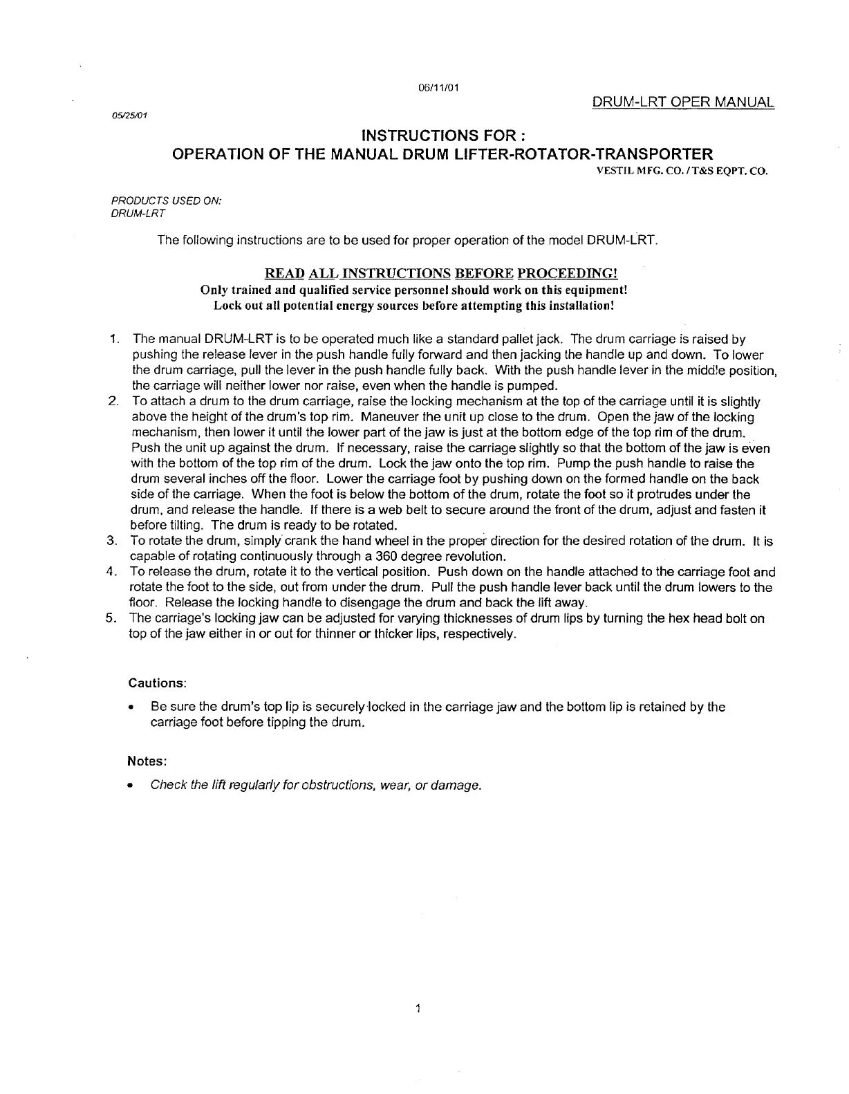 Bekijk gratis de handleiding van Vestil DRUM-LRT-DC-SCL, stel vragen en lees de antwoorden op veelvoorkomende problemen, of gebruik onze assistent om sneller informatie in de handleiding te vinden of uitleg te krijgen over specifieke functies.