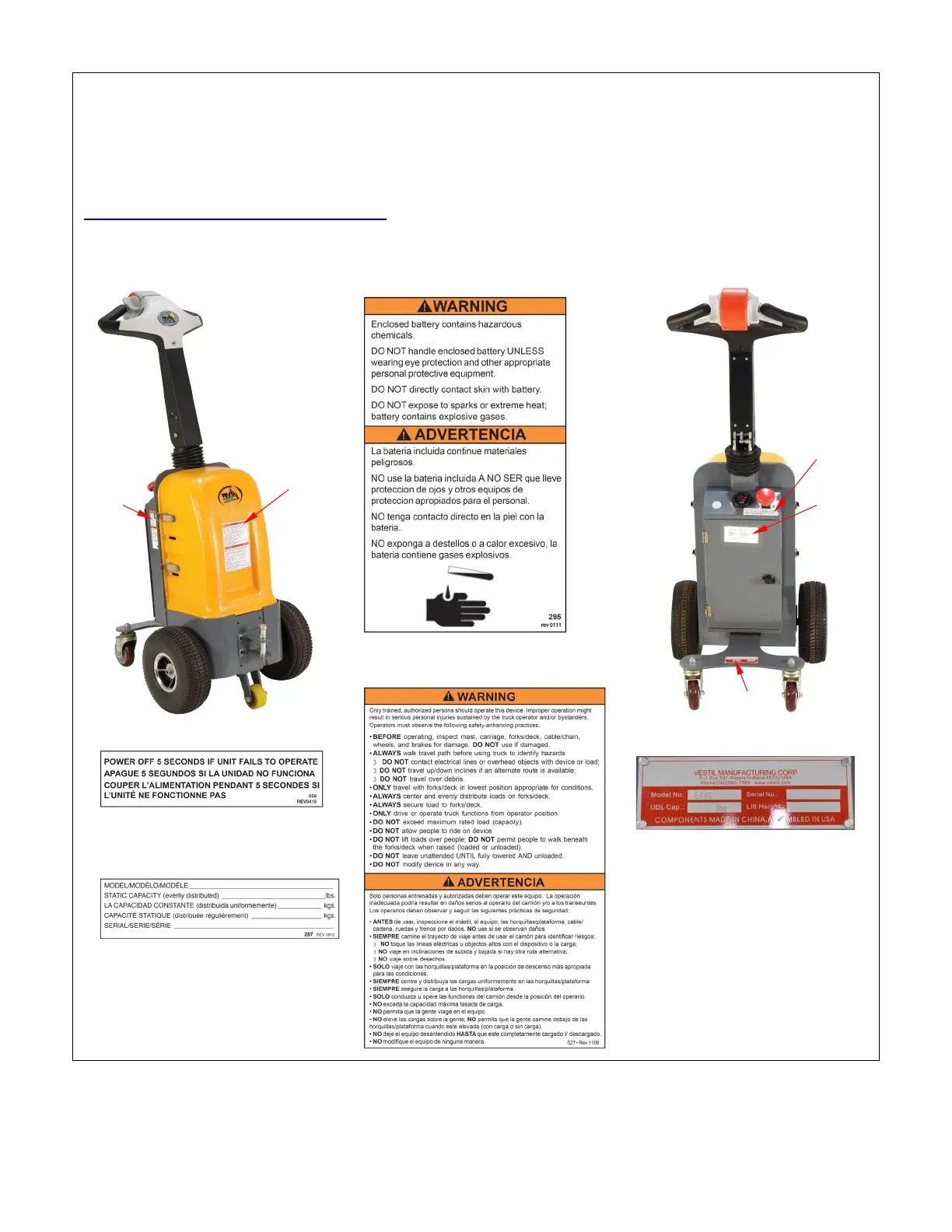 Bekijk gratis de handleiding van Vestil E-TUG-20, stel vragen en lees de antwoorden op veelvoorkomende problemen, of gebruik onze assistent om sneller informatie in de handleiding te vinden of uitleg te krijgen over specifieke functies.