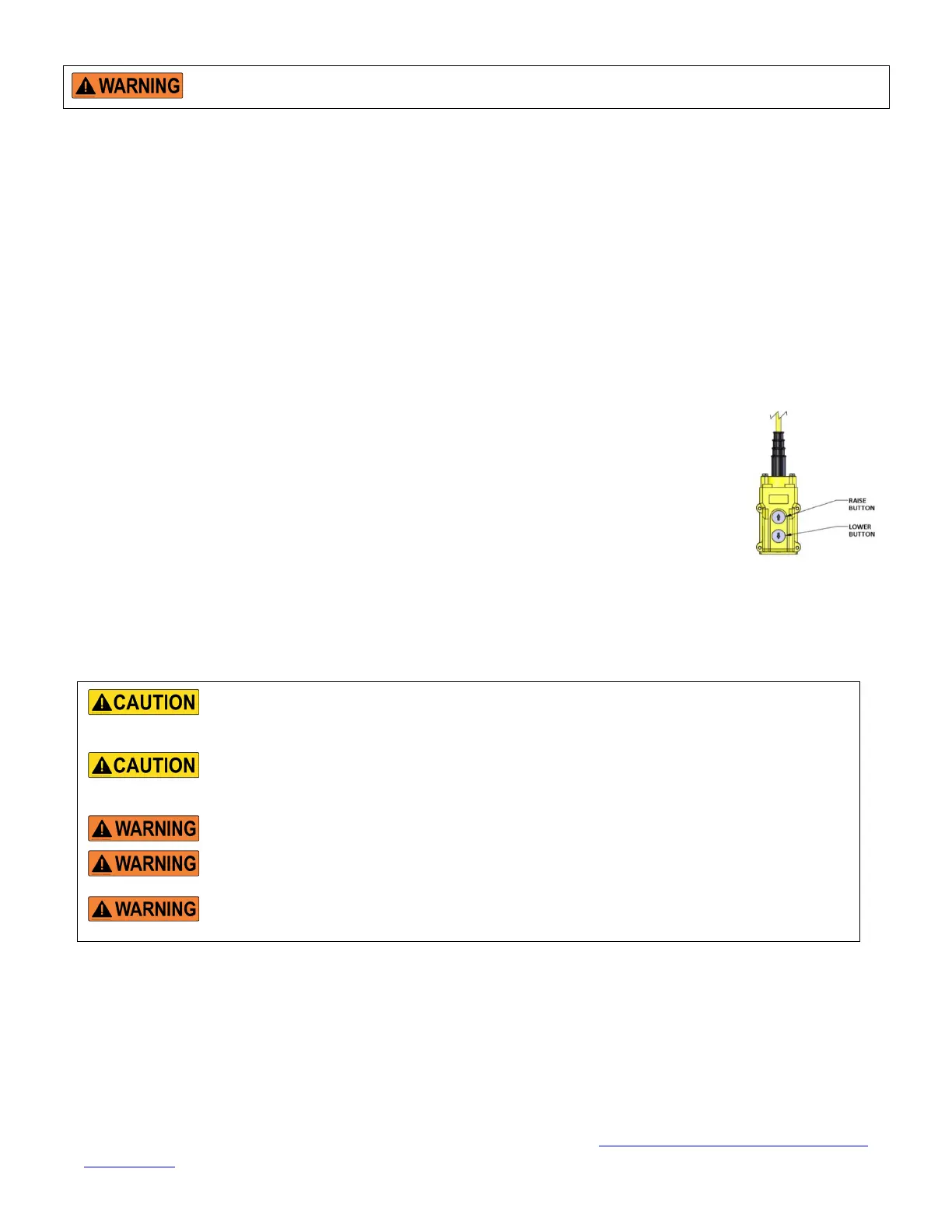 • Press the “RAISE” pushbutton to energize the power unit and raise the platform. The