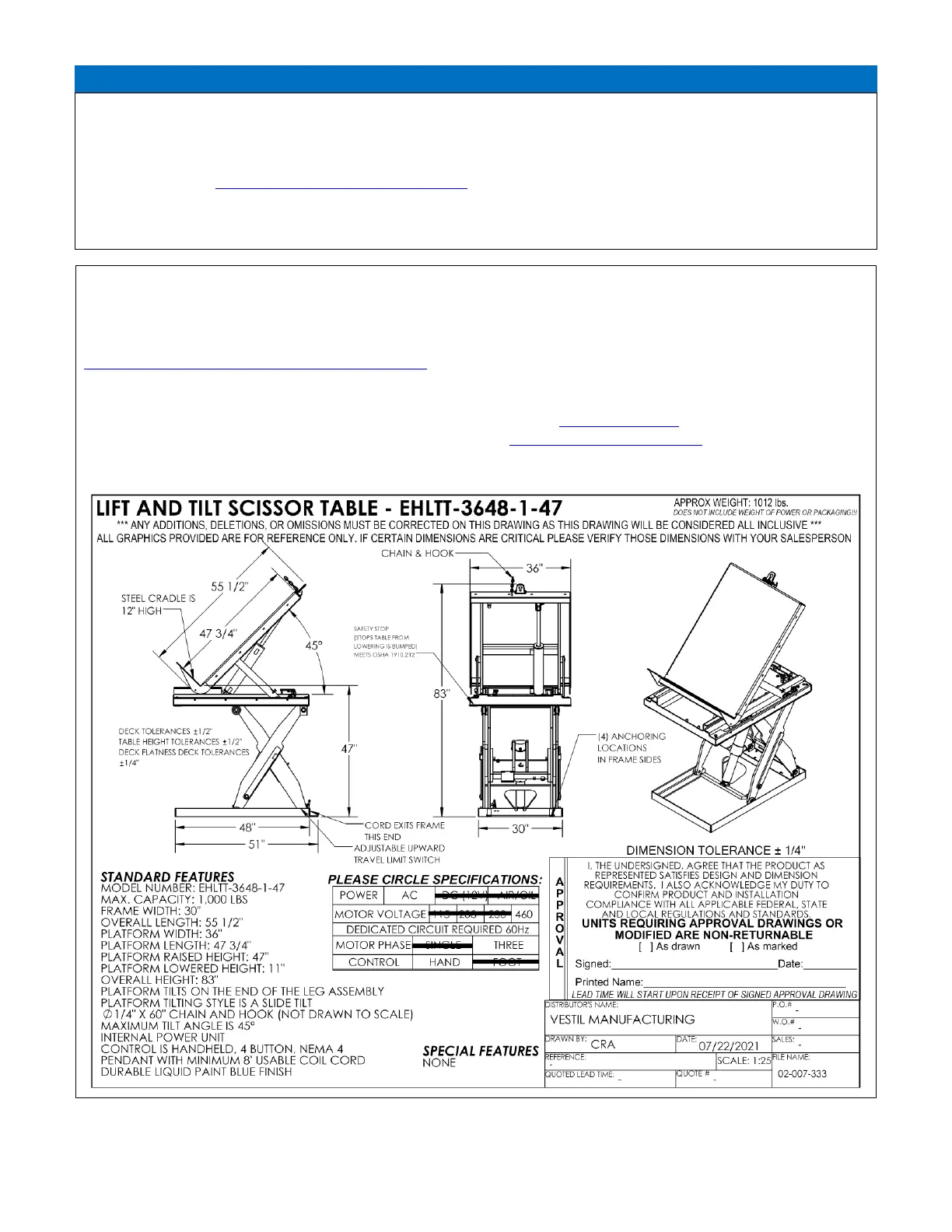 Bekijk gratis de handleiding van Vestil EHLTT-3648-3-47, stel vragen en lees de antwoorden op veelvoorkomende problemen, of gebruik onze assistent om sneller informatie in de handleiding te vinden of uitleg te krijgen over specifieke functies.