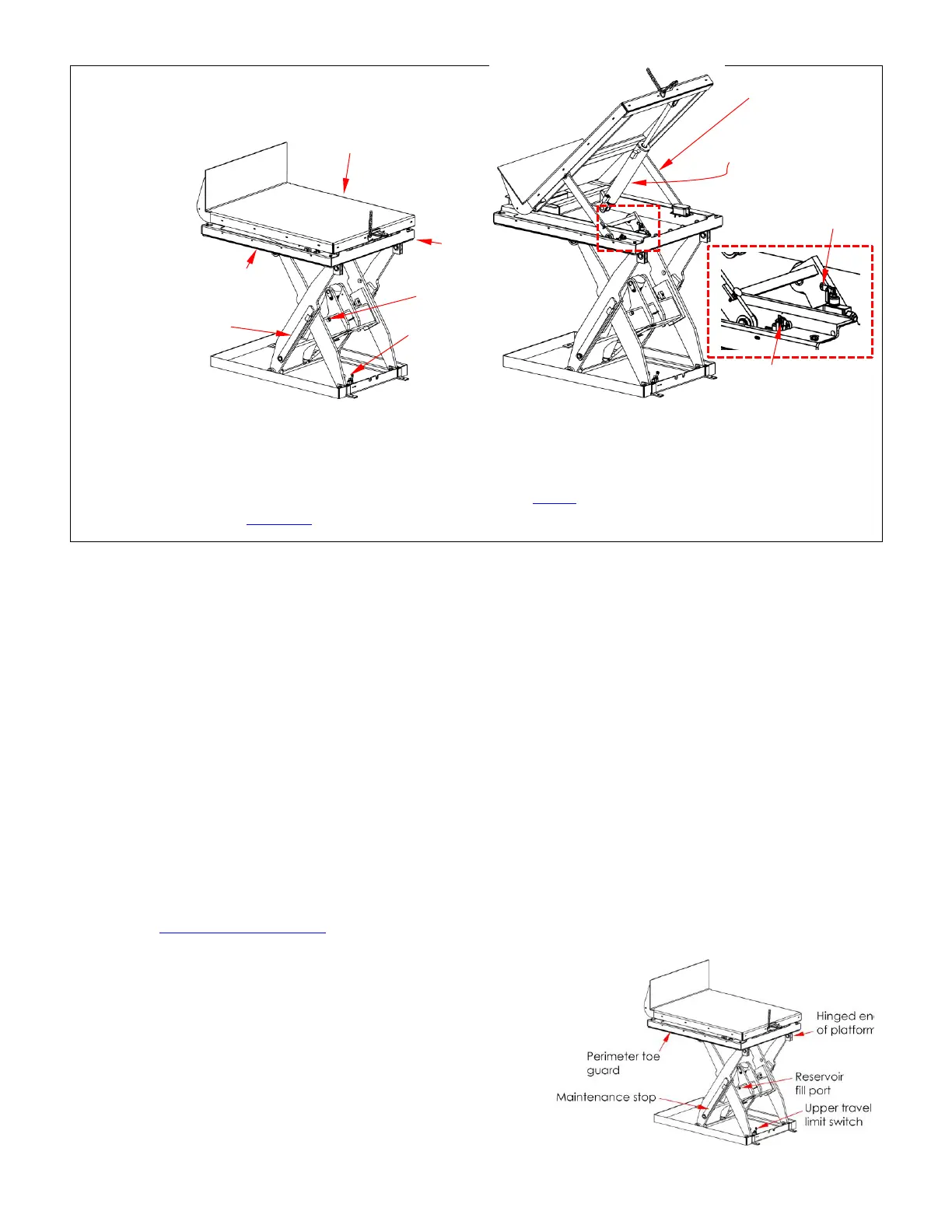 Note: The reservoir is an integral part of the scissor mechanism. If oil is needed, use an anti-wear