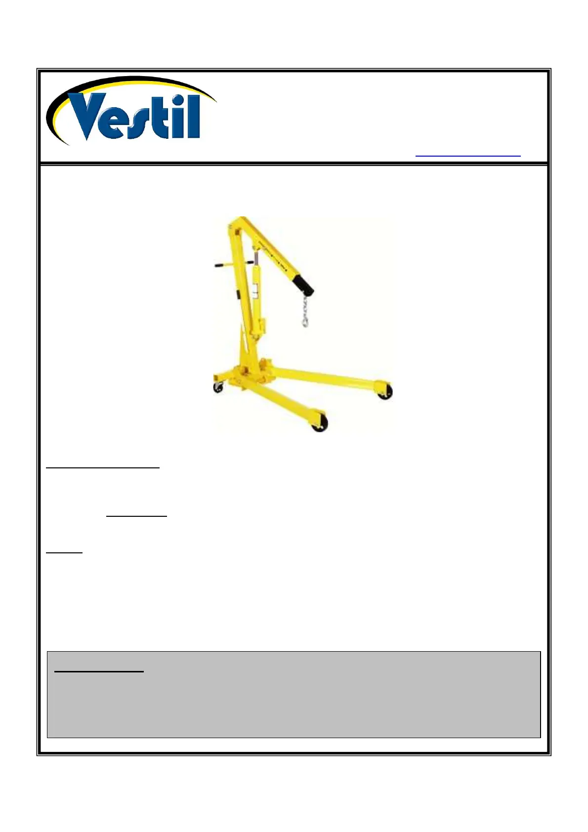 Copyright 2013 Vestil Manufacturing Corp. Page 1 of 5