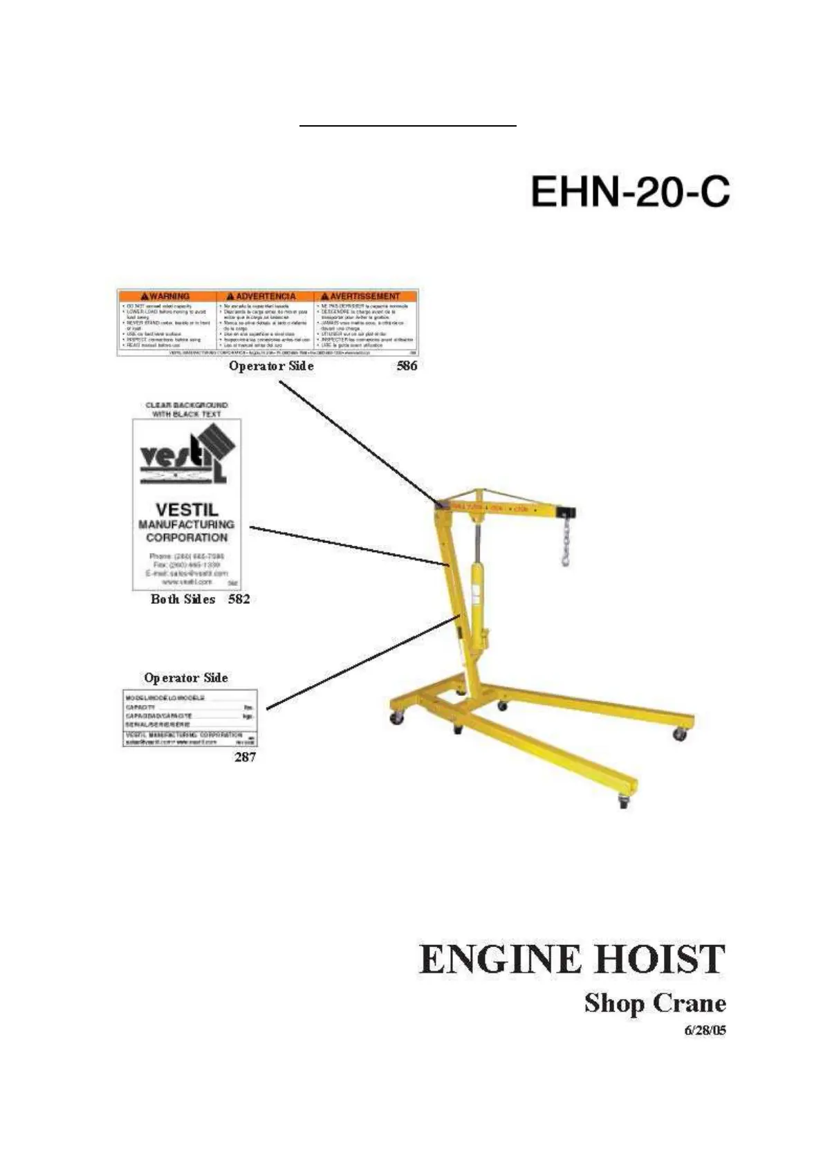 Bekijk gratis de handleiding van Vestil EHN-20-C, stel vragen en lees de antwoorden op veelvoorkomende problemen, of gebruik onze assistent om sneller informatie in de handleiding te vinden of uitleg te krijgen over specifieke functies.
