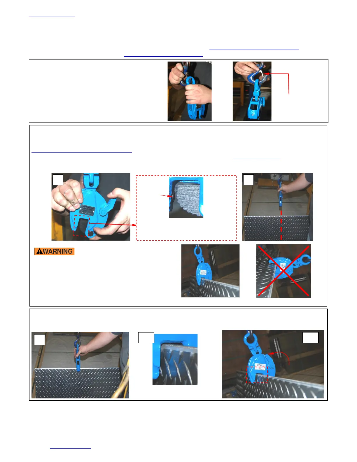 this manual (p. 9). If the clamp is in SATISFACTORY CONDITION, connect the clamp to a hoist.
