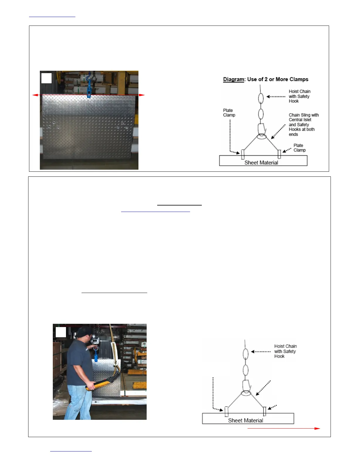 Use more than 1 clamp if the load cannot be balanced with a single plate clamp (long or flexible load).