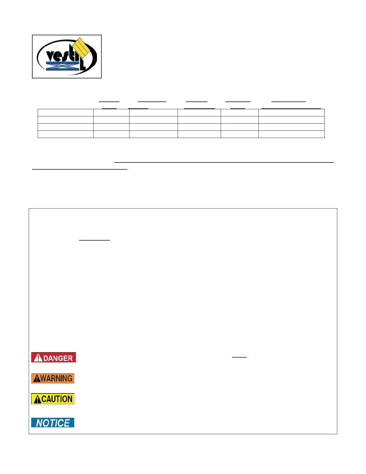 use. Contact Vestil for answers to any question you have after reading the entire manual.