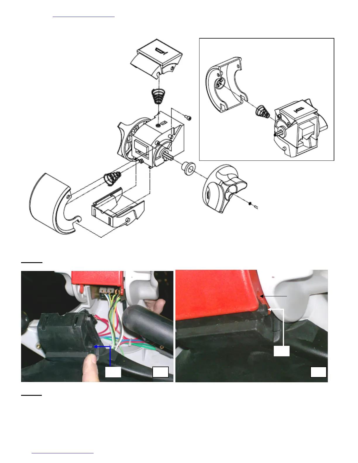 not crush wires between the two parts as they come together. Fasten the assembly to the handle with the three 5mm