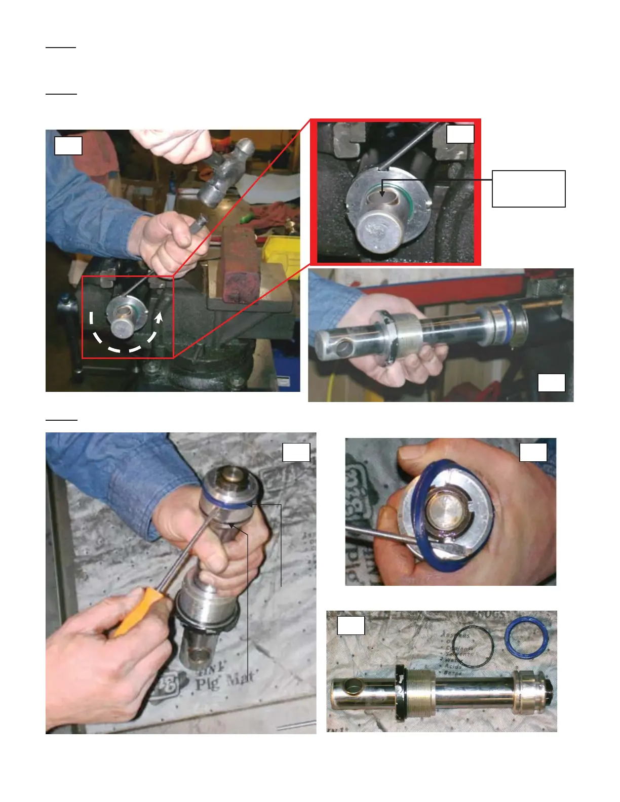 : Separate the piston rod from the barrel. To loosen the rod, immobilize the cylinder in a vise and use a flat