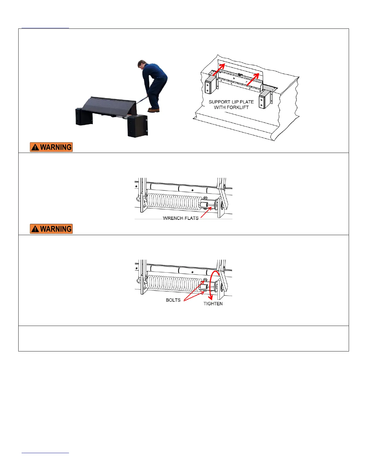 down to lift the leveler plate to a vertical position. Have a second person position a lift truck so that the forks