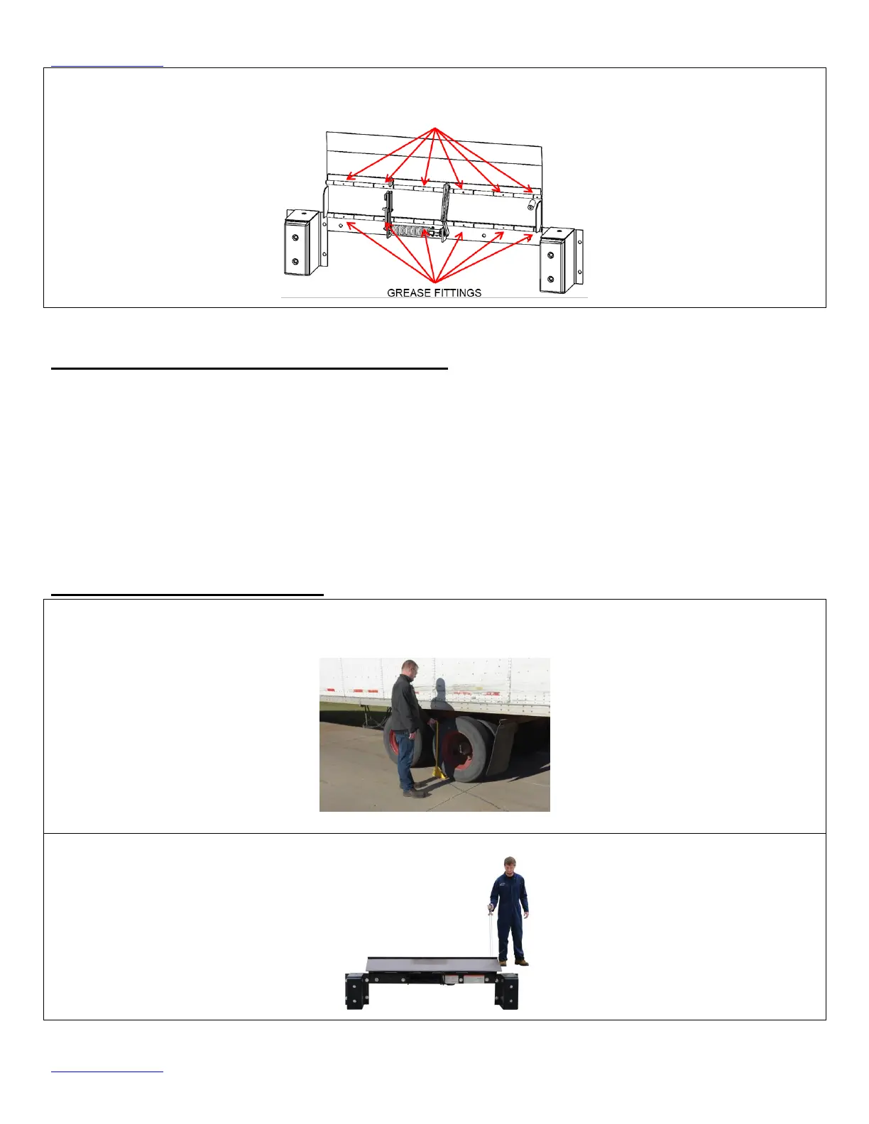 Grease fittings are located on the bottom sides of both hinges. Once lubricated, the Edge-O-Dock leveler is