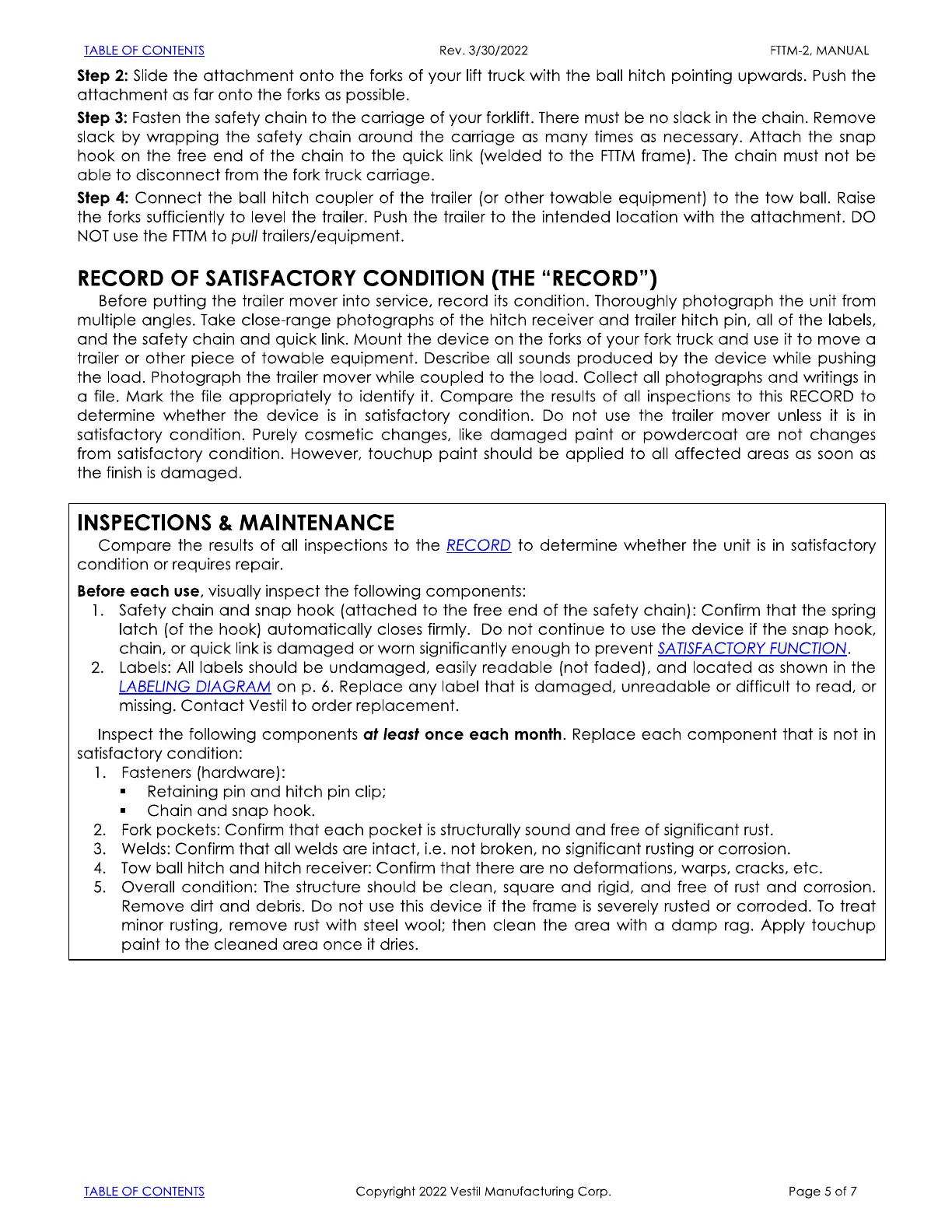Vestil FTTM-2 handleiding