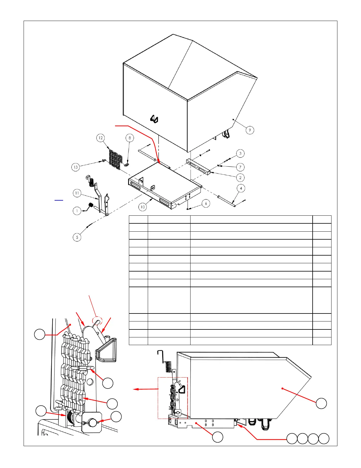 H-150-SERIES HOPPERS EXPLODED VIEW AND BILL OF MATERIALS