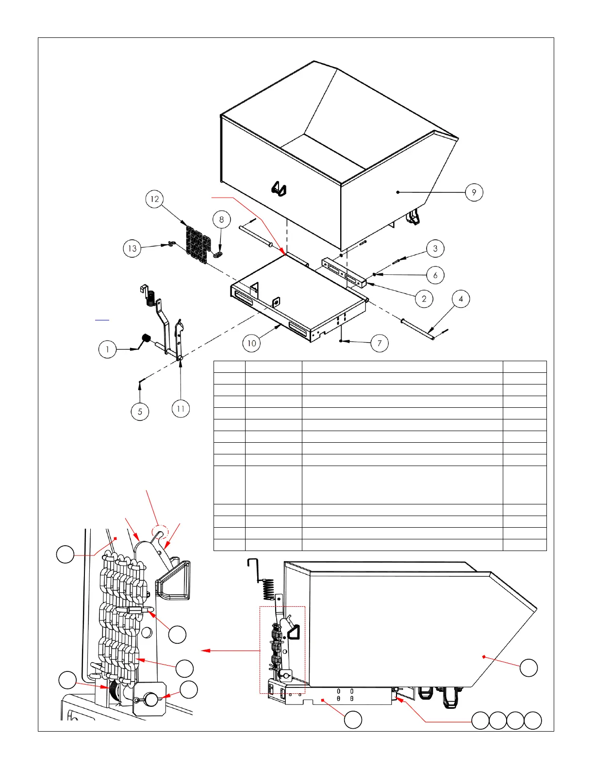 H-100-SERIES HOPPERS EXPLODED VIEW AND BILL OF MATERIALS