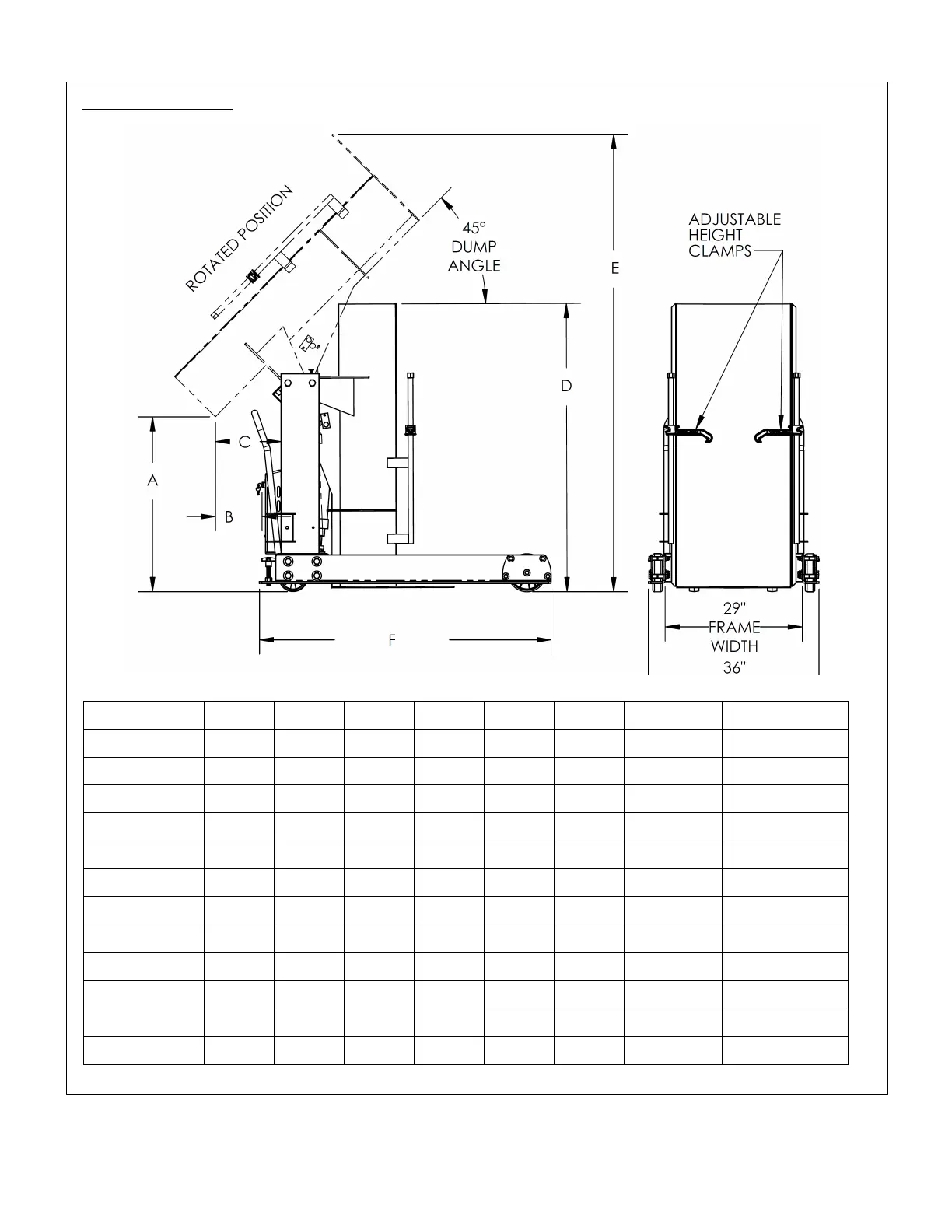 Model A B C D E F Capacity Net weight