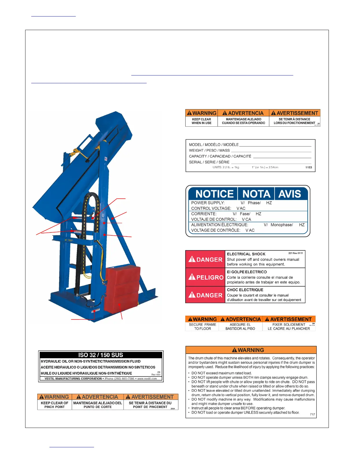 The drum dumper should be labeled as shown in the diagrams. However, label content and location