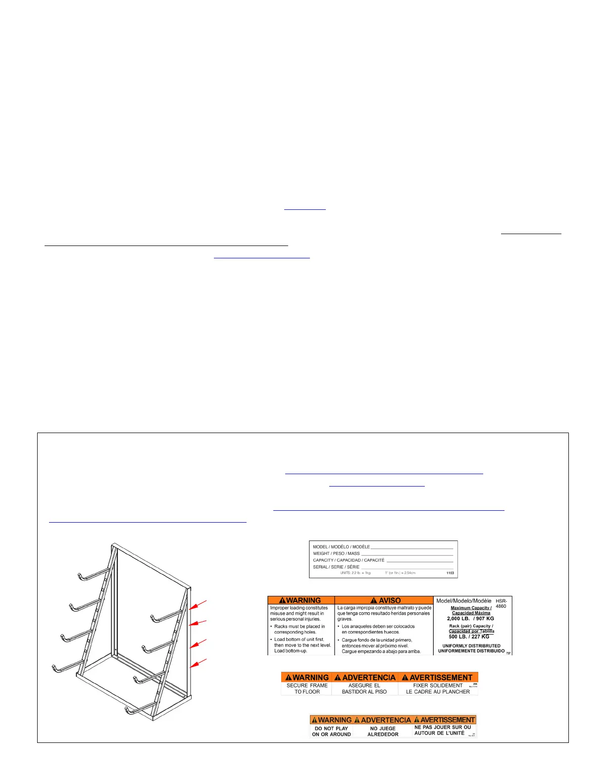 satisfactory condition. DO NOT use the rack unless all parts are in satisfactory condition. Only use