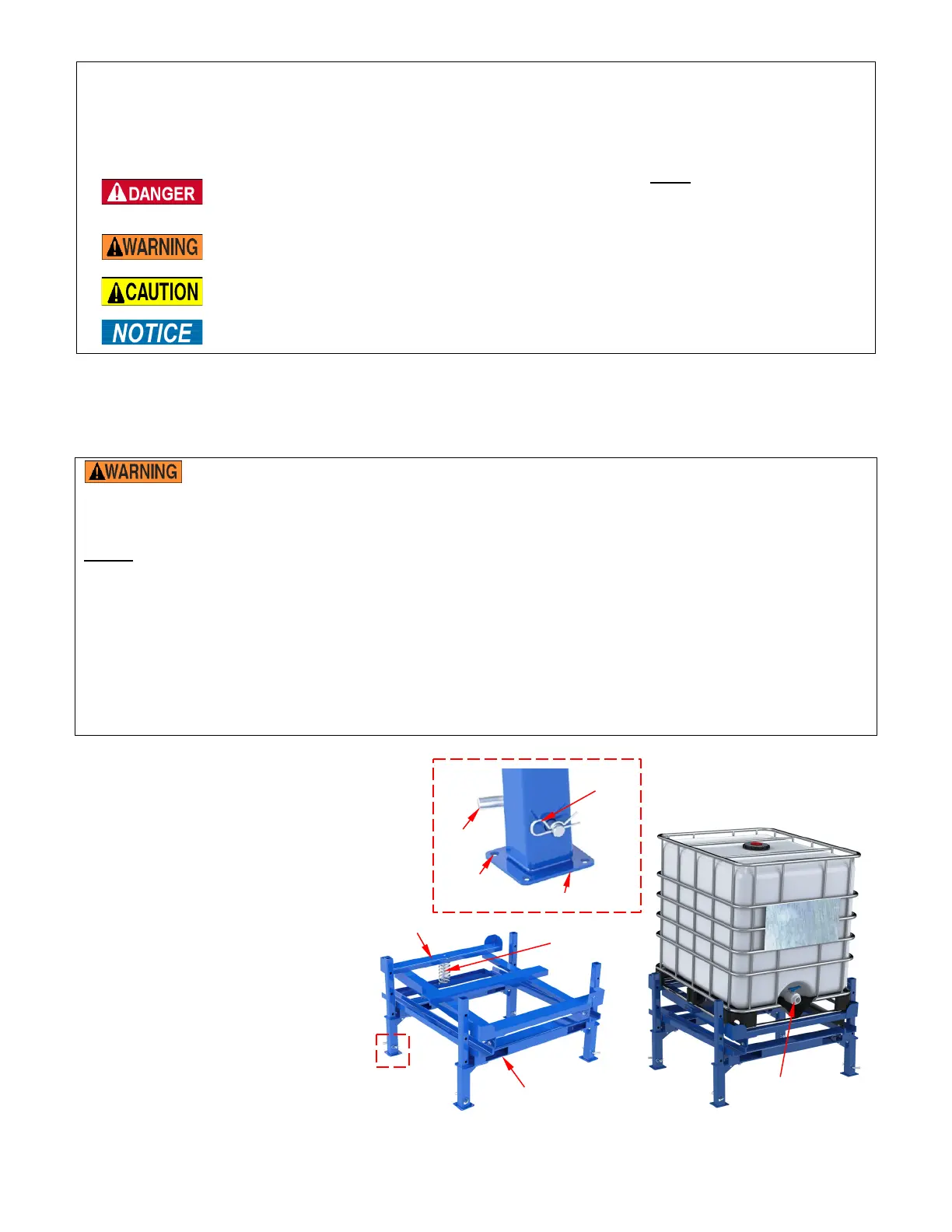 • DO NOT move the stand (via lift truck) until the IBC has been removed from the stand.