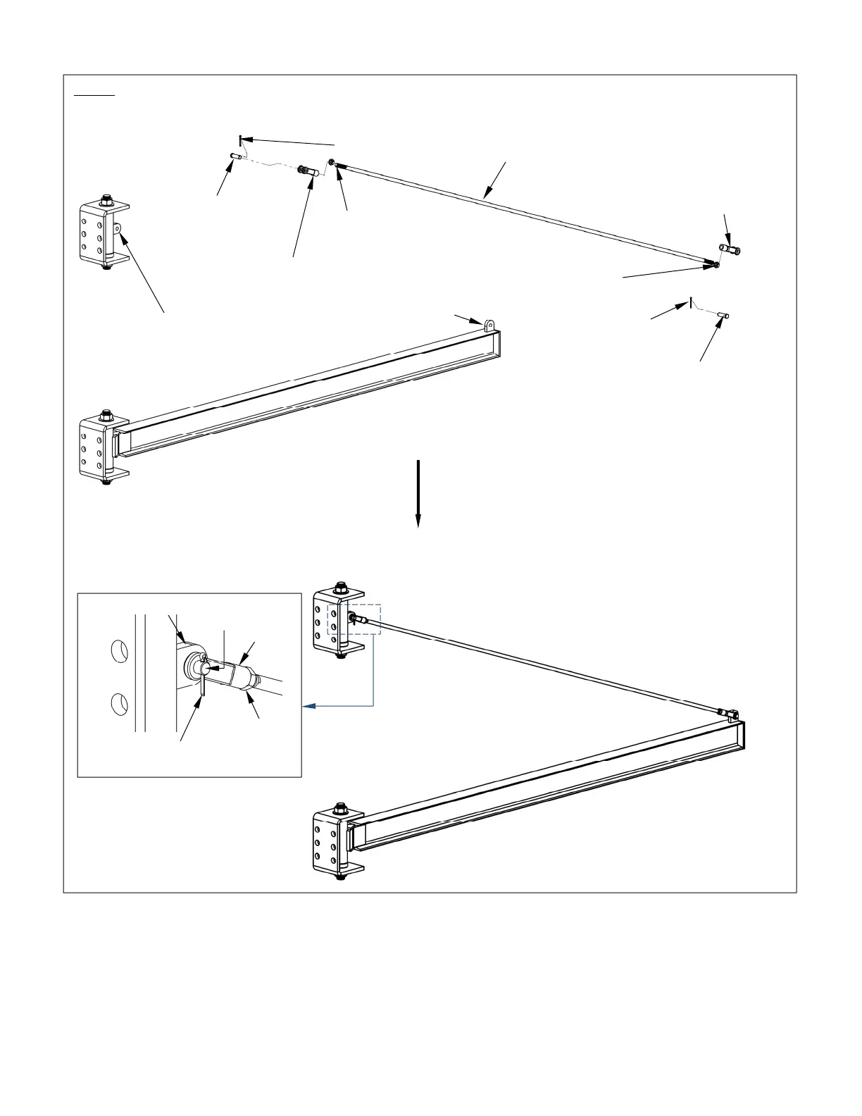 Step 3: Attach the tie rod to the jib. Wind a jam nut onto both ends of the tie rod. Then, wind a yoke onto each end