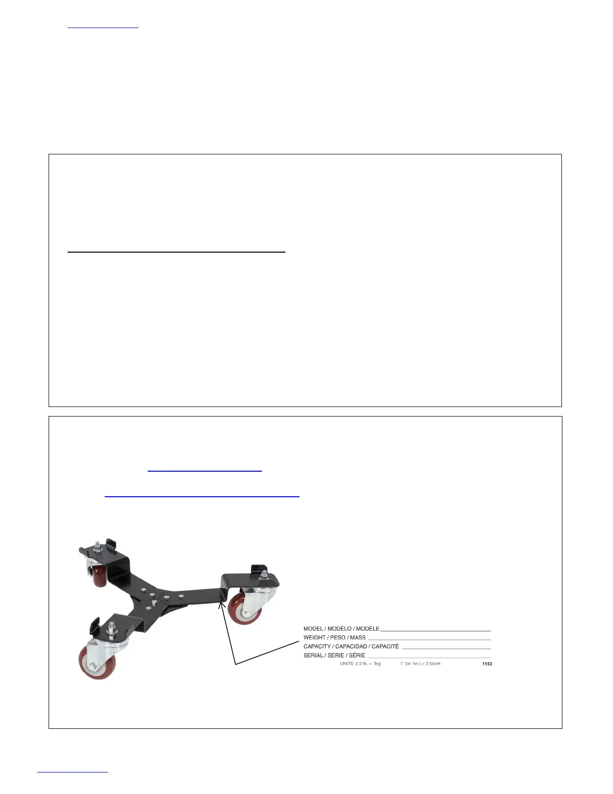 3. Casters – Inspect each caster. Tighten mounting fasteners. Each wheel should turn freely. Check