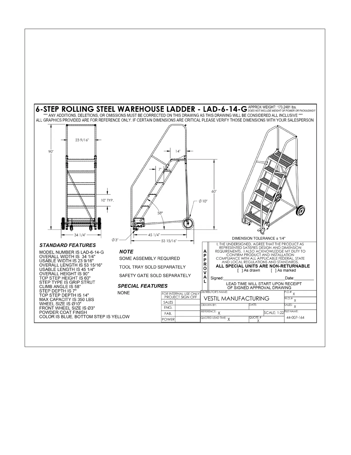 The following is an exemplar specifications document. In this case, it shows a LAD-6-14-G.