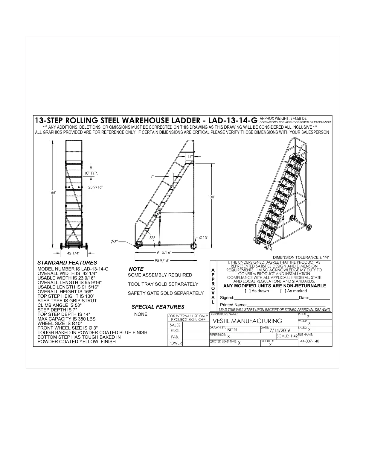 The following is an exemplar specifications document. In this case, it shows a LAD-13-14-G.