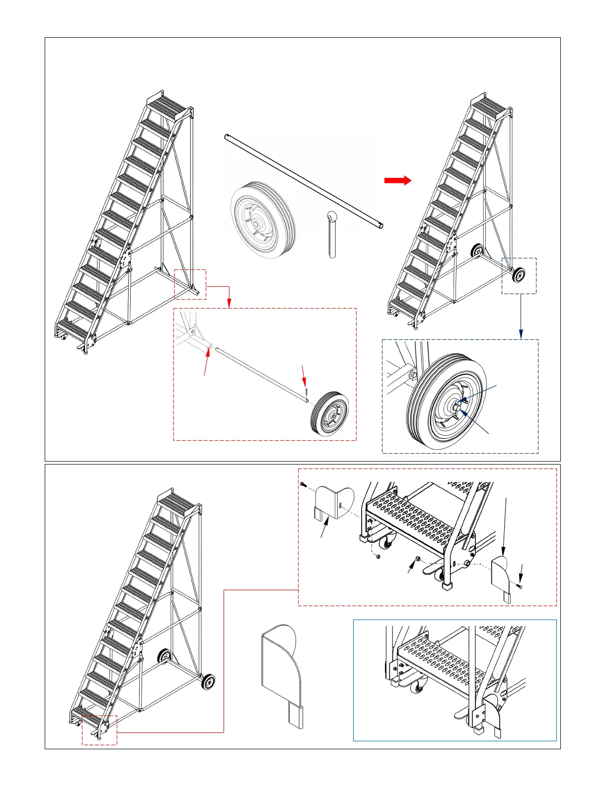 i. Insert the axle through the axle receiver of the lower step support weldment.