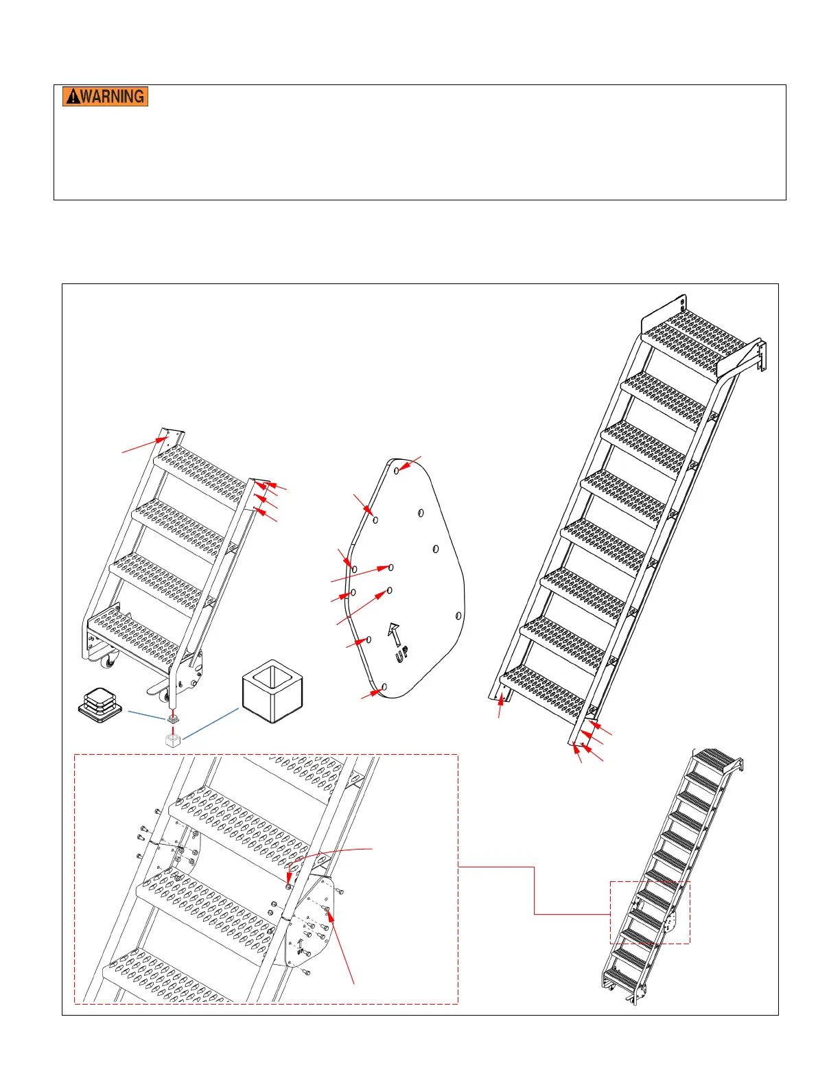• Visually inspect all ladder components immediately after delivery and before assembling the ladder for damage that might have