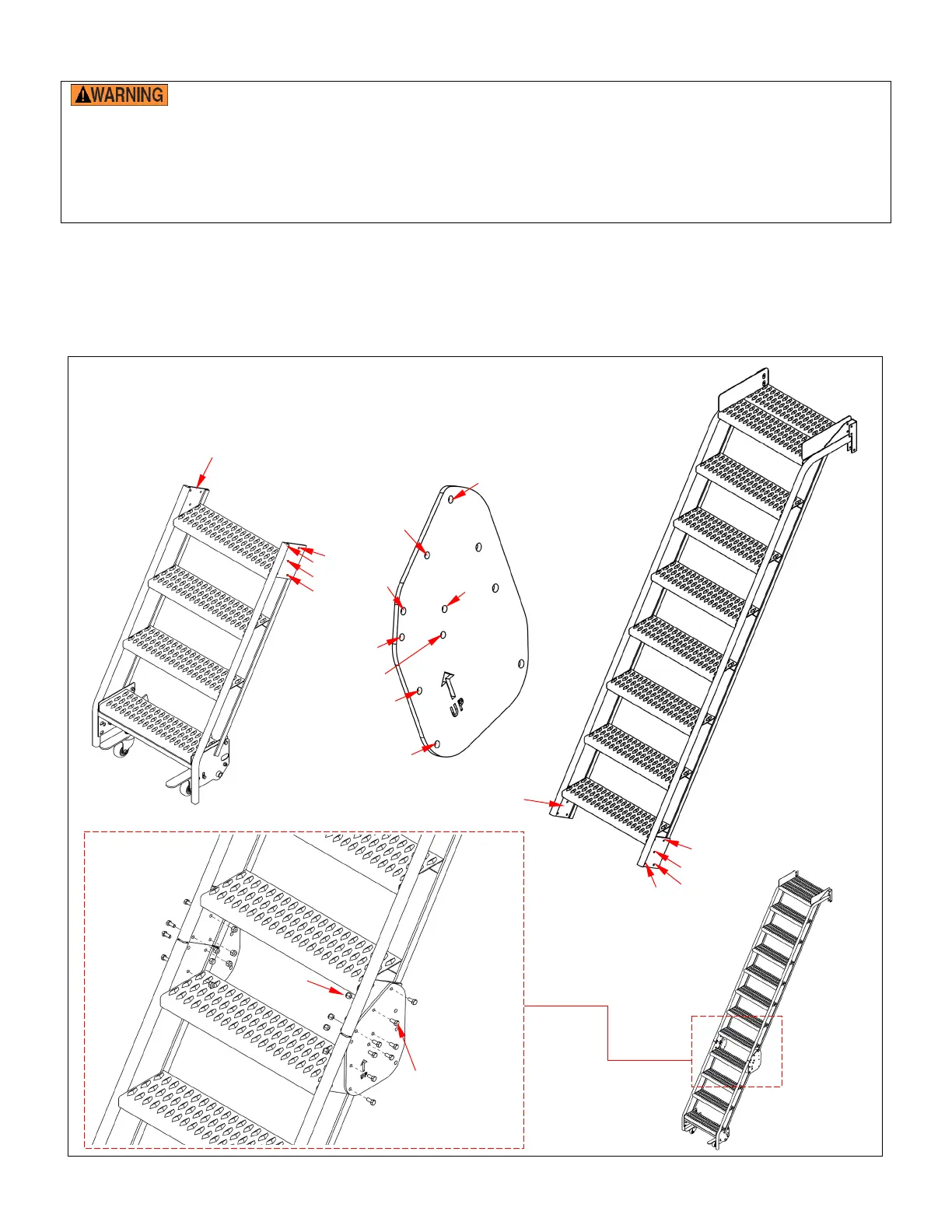 Step 1 [11 and 12-step models only]: Attach the upper and lower stair weldments