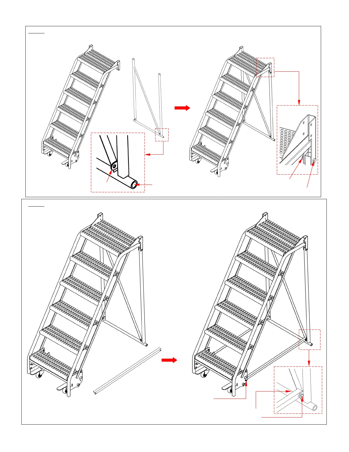 Step 3: Fasten the base supports to the ladder assembly with