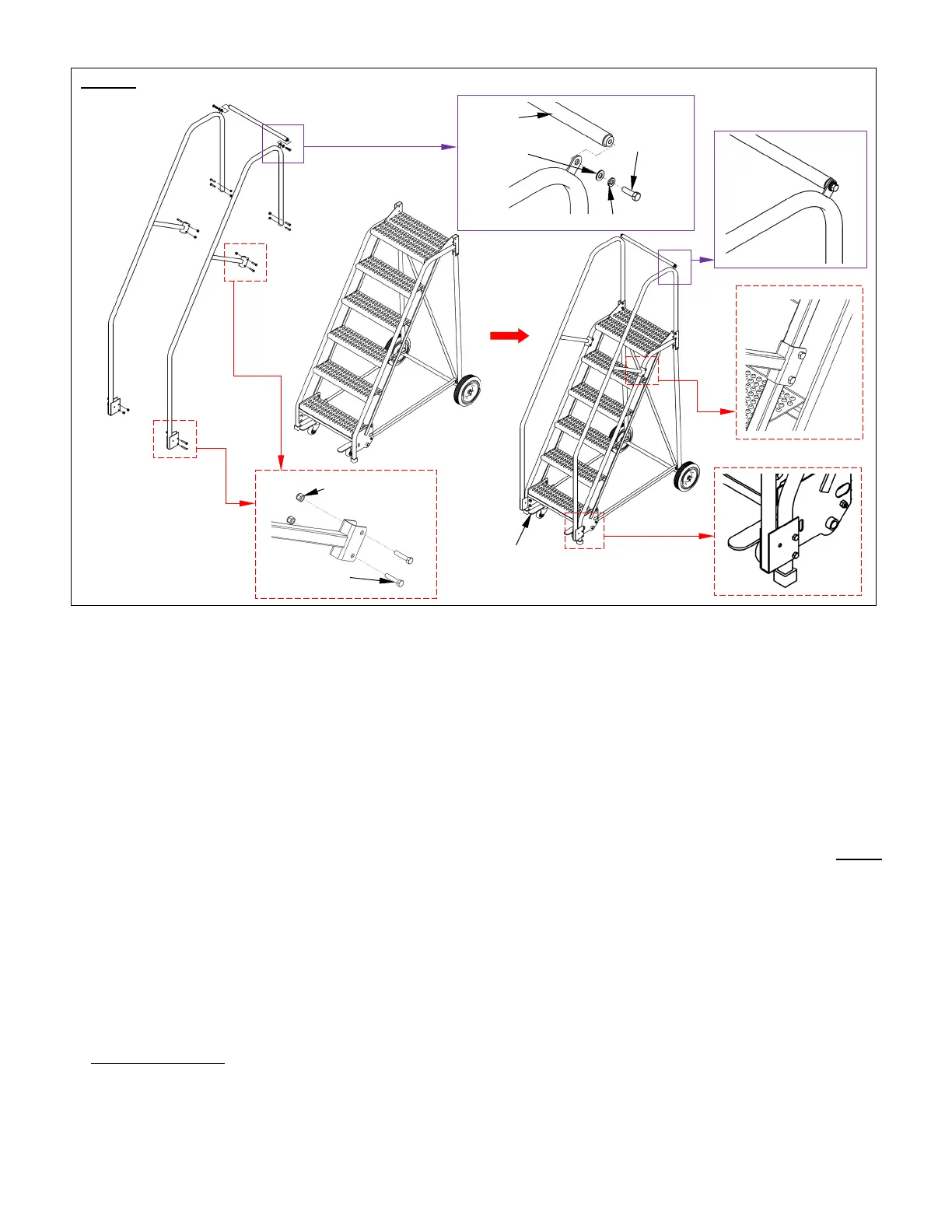 Step 7B: Install the handrails, handrail cross bar, and safety chain.