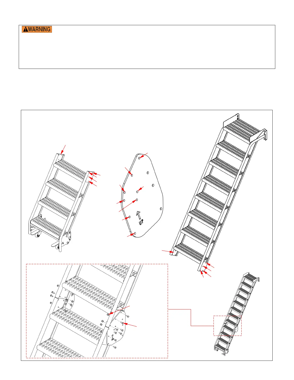 • Visually inspect all ladder components immediately after delivery and before assembling the ladder for damage that