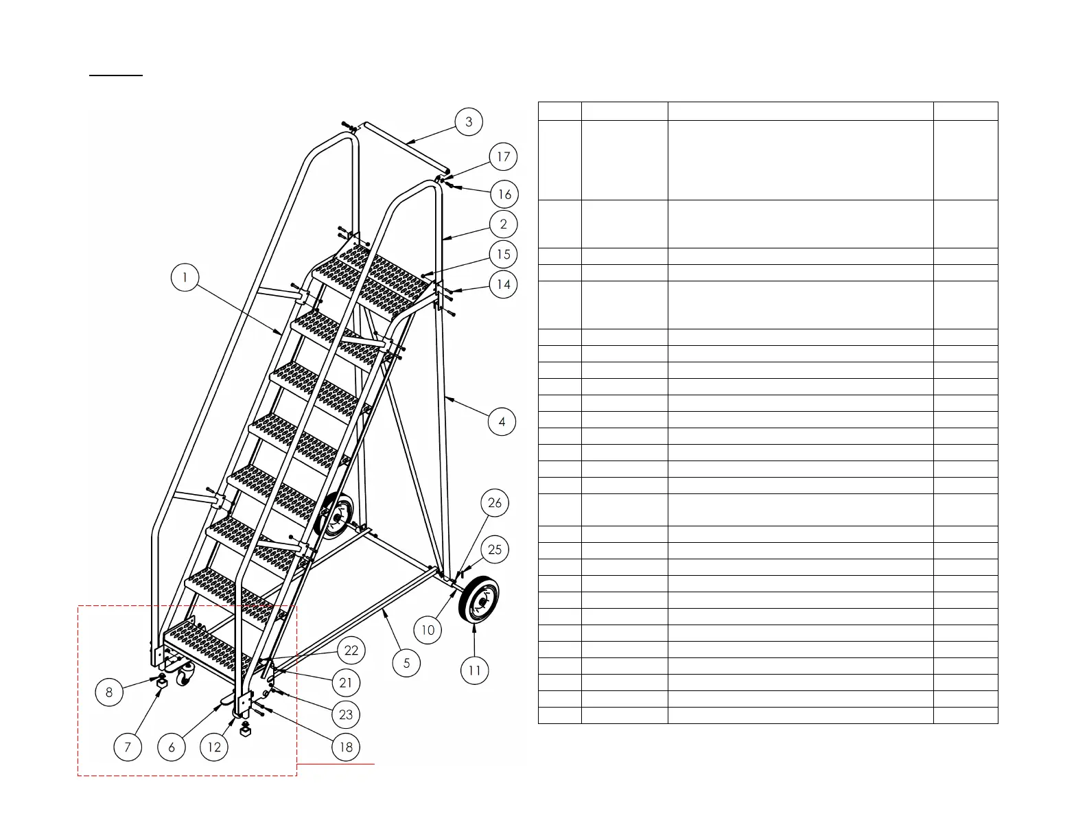 Weldment, handrail, 8-step ladder: