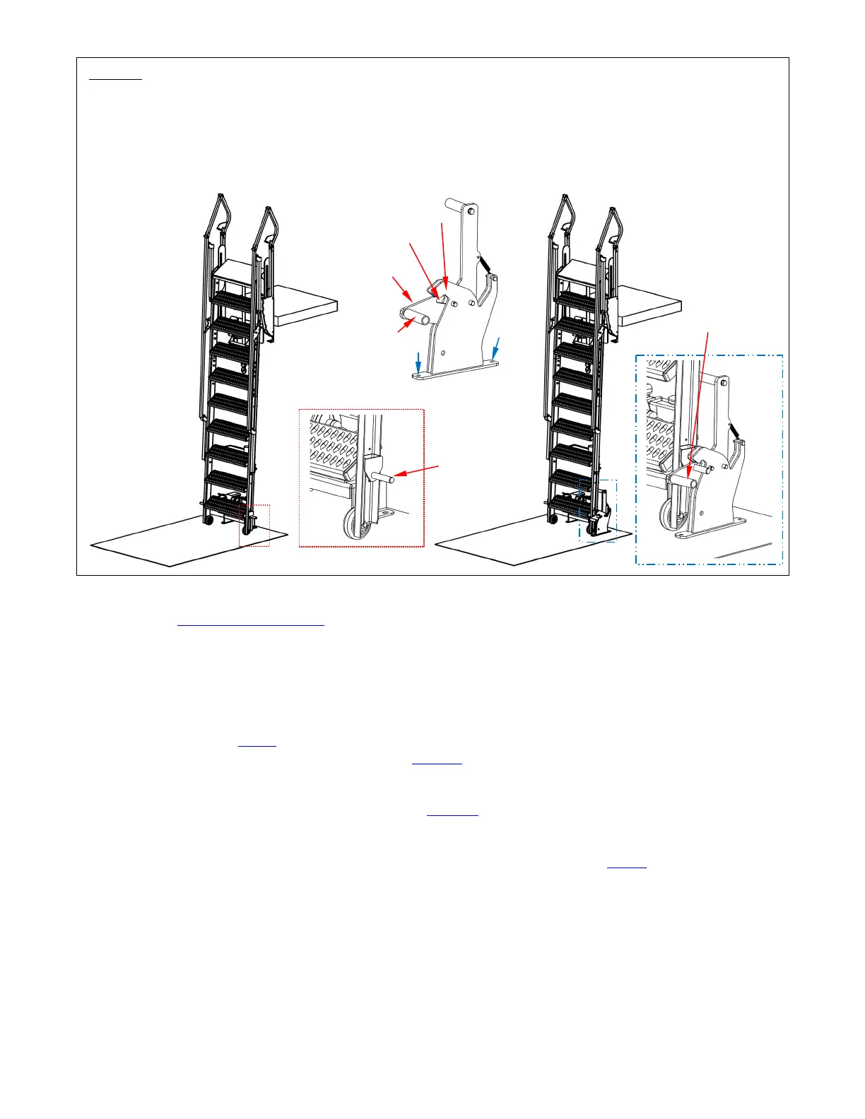 the ladder. Press the release lever down. Move the floor lock assembly to bring the locking peg into