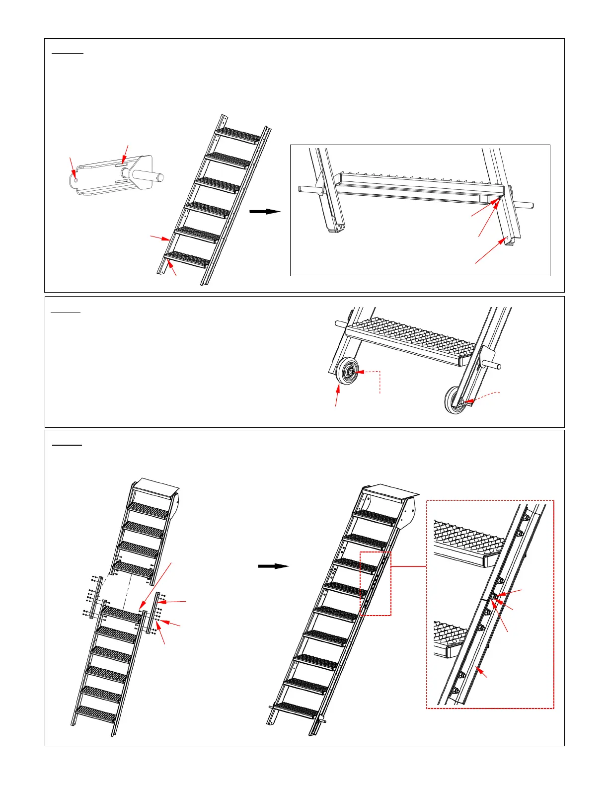 stairs. Fasten the top step weldment to the lower step weldment using 2 side stiffeners and