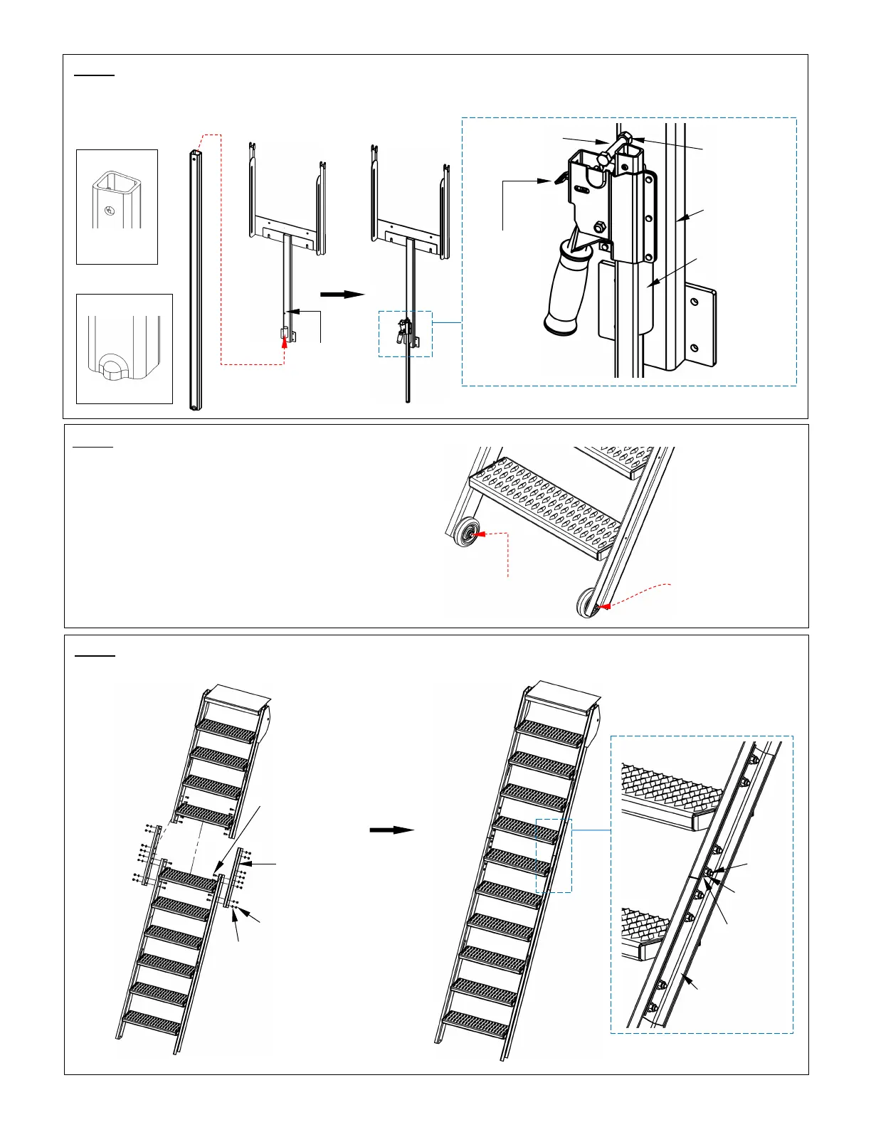 Step 6: [This step does not apply to models LAD-FM-60 and LAD-FM-72.] Assemble the stairs. Fasten the top step