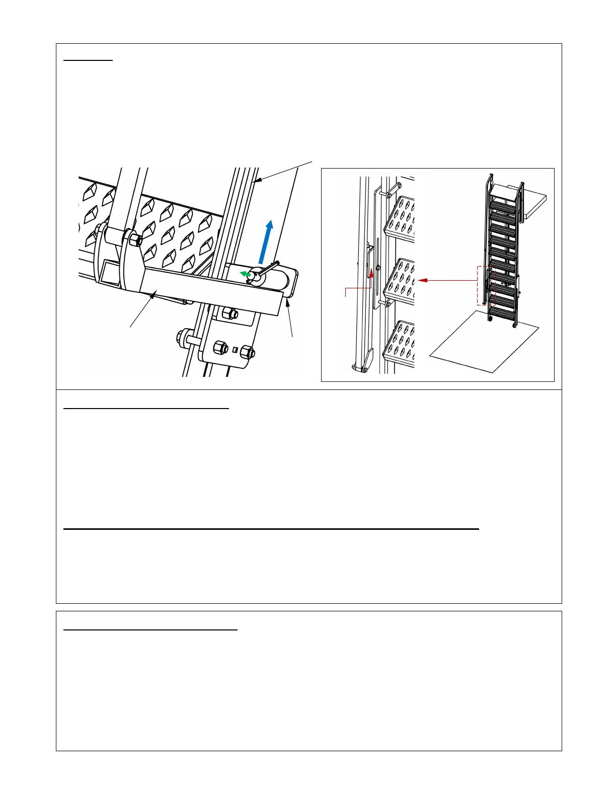the stairs slides in the pin slot of the stairway mounting frame; and how the handrails fold. Describe the effort